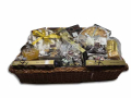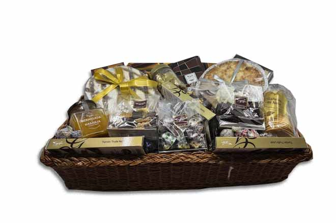 4 Barras Turrón/1 B. Rocas/Galletas 1 Talo Gr /1 T. Chocolate Rell/ 1 B. Poncheras/1B.Palitos/1T.Vasco/ 1B.Florentinas/ 1 Comuña/1B. Mermel./ Mant. Vascos/ Marron Gl./1T.Choc/1,100 kg. de Espec: vasquitos, nesquitas, goyescos, kirris, goyescas, bocaditos, frutas vascas, trufas de licor, nata y café. INGREDIENTES: Azúcar, Pasta de Cacao, Manteca de Cacao, Avellana, Almendra, Jarabe de Glucosa, Aceites y Grasas Vegetales de origen; coco, girasol, shea, Leche en polvo, Nata, Azúcar Invertido, Frutas Confitadas (piña, naranja, pera, melocotón), Licores, Café, Coco, Emulgente Lecitina de Soja, Conservante Sorbato Potásico, Estabilizante Sorbitol, Conservantes Sulfitos (fruta confitada), Aromas autorizados. // Tarifas de transporte: Álava: 6,15 euros. Provincias Grupo 1: 6,25 euros (limítrofes con Álava), Provincias Grupo 2: 7,15 euros (media distancia), Provincias Grupo 3: 8,15 euros (larga distancia), Baleares: 15,00 euros. // 50% de descuento entre 100 y 200- Gratis por encima de 200 euros./ Presentación final con celofán y lazo de regalo