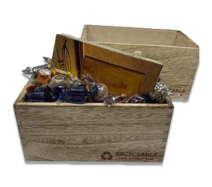 1 Turrón/ 500 gr. Surtido de Bombones y Trufas: vasquitos, nesquitas, goyescos, kirris, goyescas, bocaditos, frutas vascas, trufas de licor, nata y café. INGREDIENTES: Azúcar, Pasta de Cacao, Manteca de Cacao, Avellana, Almendra, Jarabe de Glucosa, Aceites y Grasas Vegetales de origen; coco, girasol, shea, Leche en polvo, Nata, Azúcar Invertido, Frutas Confitadas (piña, naranja, pera, melocotón), Licores, Café, Coco, Emulgente Lecitina de Soja, Conservante Sorbato Potásico, Estabilizante Sorbitol, Conservantes Sulfitos (fruta confitada), Aromas autorizados. // Tarifas de transporte: Álava: 6,15 euros. Provincias Grupo 1: 6,25 euros (limítrofes con Álava), Provincias Grupo 2: 7,15 euros (media distancia), Provincias Grupo 3: 8,15 euros (larga distancia), Baleares: 15,00 euros. // 50% de descuento entre 100 y 200- Gratis por encima de 200 euros./ Presentación final con celofán y lazo de regalo
