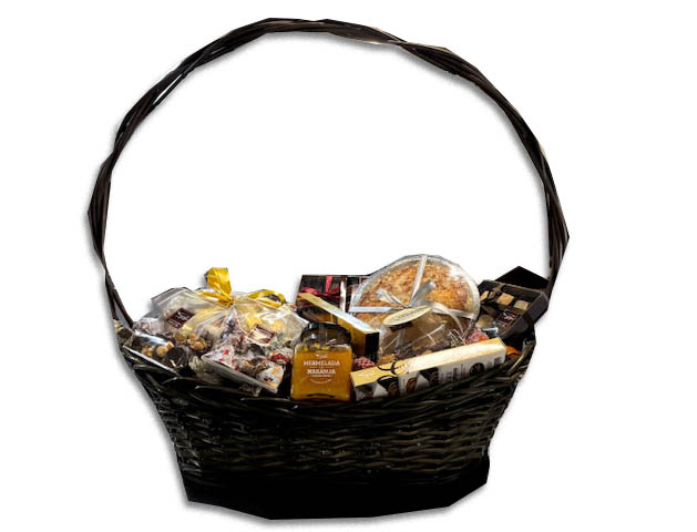 3 Barras Turrón/1 B. Rocas/ Mant. Vascos/ 1 Talo Gr /1 T. Chocolate/ 1 B. Poncheras/1B.Palitos/1T.Vasco/ 1B.Florentinas/1C. Bombones/ 1 Comuña/1B. Mermel./0,900 kg. de Espec: vasquitos, nesquitas, goyescos, kirris, goyescas, bocaditos, frutas vascas, trufas de licor, nata y café. INGREDIENTES: Azúcar, Pasta de Cacao, Manteca de Cacao, Avellana, Almendra, Jarabe de Glucosa, Aceites y Grasas Vegetales de origen; coco, girasol, shea, Leche en polvo, Nata, Azúcar Invertido, Frutas Confitadas (piña, naranja, pera, melocotón), Licores, Café, Coco, Emulgente Lecitina de Soja, Conservante Sorbato Potásico, Estabilizante Sorbitol, Conservantes Sulfitos (fruta confitada), Aromas autorizados. // Tarifas de transporte: Álava: 6,15 euros. Provincias Grupo 1: 6,25 euros (limítrofes con Álava), Provincias Grupo 2: 7,15 euros (media distancia), Provincias Grupo 3: 8,15 euros (larga distancia), Baleares: 15,00 euros. // 50% de descuento entre 100 y 200- Gratis por encima de 200 euros./ Presentación final con celofán y lazo de regalo