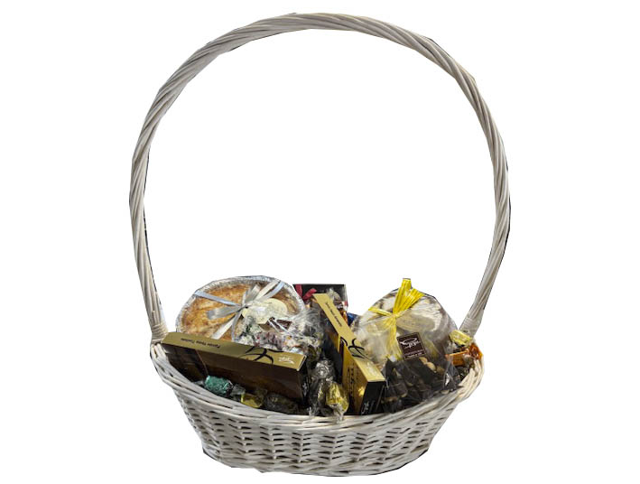2 Barras turrón-1 Comuña-1 Talo Pq./ 1 C/ Bombones-1 B/ Rocas-1 B/ Poncheras- 1 Tableta chocolate/ 700 Gr. Surt. de Especialidades vasquitos, nesquitas, goyescos, kirris, goyescas, bocaditos, frutas vascas, trufas de licor, nata y café. INGREDIENTES: Azúcar, Pasta de Cacao, Manteca de Cacao, Avellana, Almendra, Jarabe de Glucosa, Aceites y Grasas Vegetales de origen; coco, girasol, shea, Leche en polvo, Nata, Azúcar Invertido, Frutas Confitadas (piña, naranja, pera, melocotón), Licores, Café, Coco, Emulgente Lecitina de Soja, Conservante Sorbato Potásico, Estabilizante Sorbitol, Conservantes Sulfitos (fruta confitada), Aromas autorizados. // Tarifas de transporte: Álava: 6,15 euros. Provincias Grupo 1: 6,25 euros (limítrofes con Álava), Provincias Grupo 2: 7,15 euros (media distancia), Provincias Grupo 3: 8,15 euros (larga distancia), Baleares: 15,00 euros. // 50% de descuento entre 100 y 200- Gratis por encima de 200 euros./ Presentación final con celofán y lazo de regalo