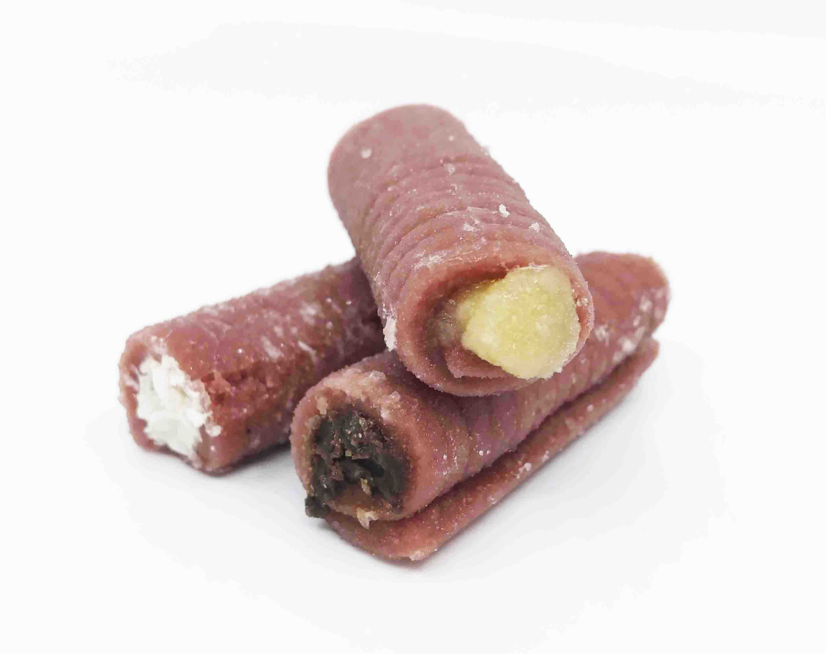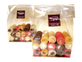 Contiene 500 gr. de Huesos de Santo con escarche de almíbar y rellenos de Yema Confitada, Trufa o Crema de Mantequilla.