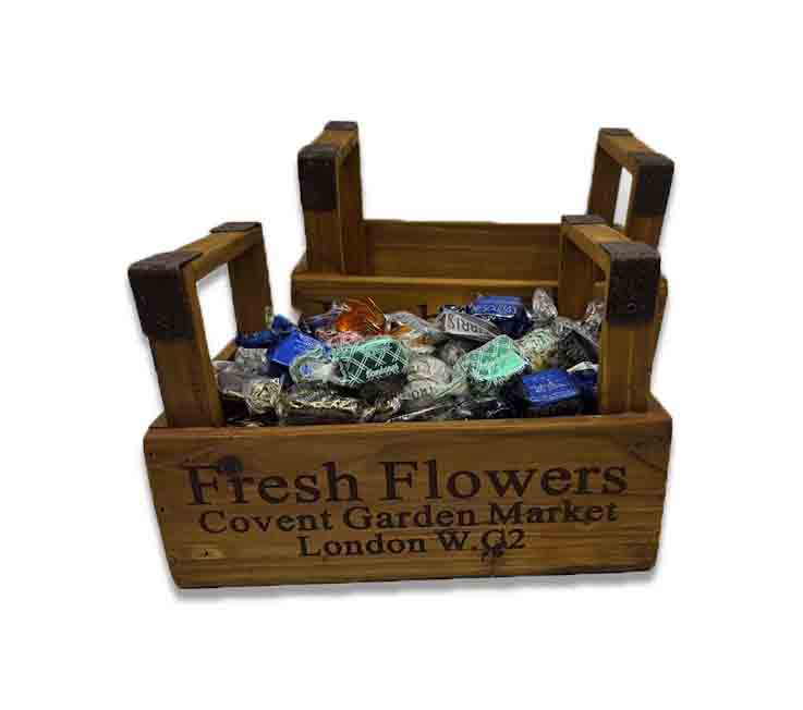 500 gr. Surtido de vasquitos, nesquitas, goyescos, kirris, goyescas, bocaditos, frutas vascas, trufas de licor, nata y café. INGREDIENTES: Azúcar, Pasta de Cacao, Manteca de Cacao, Avellana, Almendra, Jarabe de Glucosa, Aceites y Grasas Vegetales de origen; coco, girasol, shea, Leche en polvo, Nata, Azúcar Invertido, Frutas Confitadas (piña, naranja, pera, melocotón), Licores, Café, Coco, Emulgente Lecitina de Soja, Conservante Sorbato Potásico, Estabilizante Sorbitol, Conservantes Sulfitos (fruta confitada), Aromas autorizados. // Tarifas de transporte: Álava: 6,15 euros. Provincias Grupo 1: 6,25 euros (limítrofes con Álava), Provincias Grupo 2: 7,15 euros (media distancia), Provincias Grupo 3: 8,15 euros (larga distancia), Baleares: 15,00 euros. // 50% de descuento entre 100 y 200- Gratis por encima de 200 euros./ Presentación final con celofán y lazo de regalo
