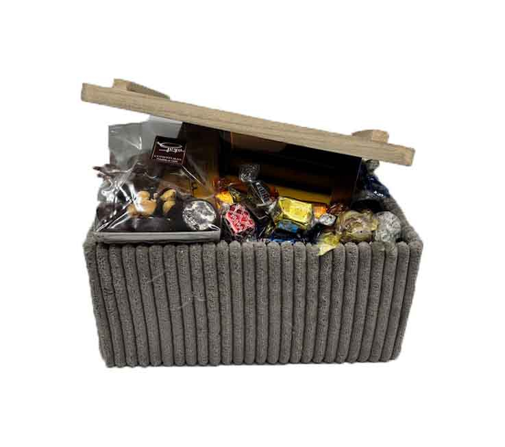 1Turrón/ 1B.Rocas de Choc / 500 Gr. Surtido de Espec: vasquitos, nesquitas, goyescos, kirris, goyescas, bocaditos, frutas vascas, trufas de licor, nata y café. INGREDIENTES: Azúcar, Pasta de Cacao, Manteca de Cacao, Avellana, Almendra, Jarabe de Glucosa, Aceites y Grasas Vegetales de origen; coco, girasol, shea, Leche en polvo, Nata, Azúcar Invertido, Frutas Confitadas (piña, naranja, pera, melocotón), Licores, Café, Coco, Emulgente Lecitina de Soja, Conservante Sorbato Potásico, Estabilizante Sorbitol, Conservantes Sulfitos (fruta confitada), Aromas autorizados. // Tarifas de transporte: Álava: 6,15 euros. Provincias Grupo 1: 6,25 euros (limítrofes con Álava), Provincias Grupo 2: 7,15 euros (media distancia), Provincias Grupo 3: 8,15 euros (larga distancia), Baleares: 15,00 euros. // 50% de descuento entre 100 y 200- Gratis por encima de 200 euros./ Presentación final con celofán y lazo de regalo.