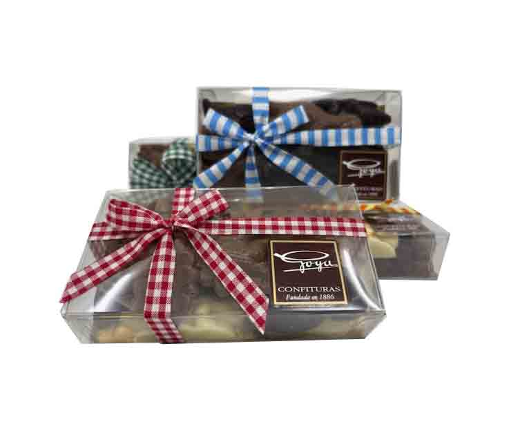 Cajas con figuras de dinosaurios en coberturas de chocolate negra, de leche y blanca. Ingredientes: Azúcar, Pasta de Cacao, Manteca de Cacao, Leche, Lecitina de Soja. Haz clic en la imagen para ampliarla.