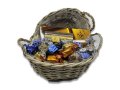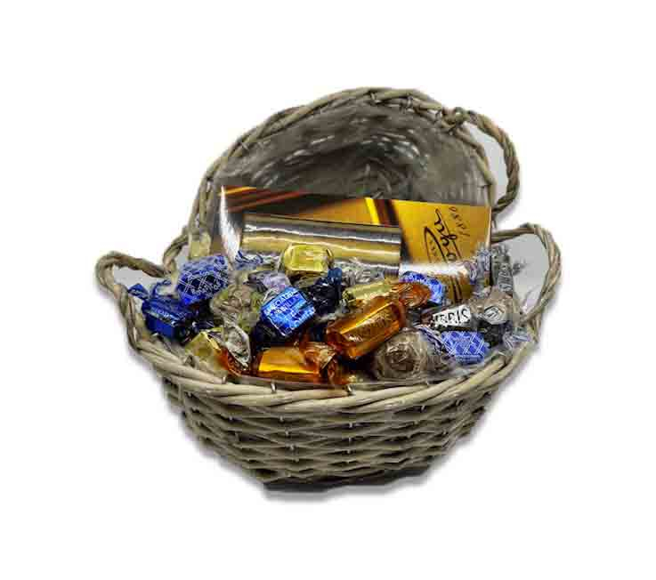 1B.Turrón /600 gr. Surtido de de Espec. vasquitos, nesquitas, goyescos, kirris, goyescas, bocaditos, frutas vascas, trufas de licor, nata y café. INGREDIENTES: Azúcar, Pasta de Cacao, Manteca de Cacao, Avellana, Almendra, Jarabe de Glucosa, Aceites y Grasas Vegetales de origen; coco, girasol, shea, Leche en polvo, Nata, Azúcar Invertido, Frutas Confitadas (piña, naranja, pera, melocotón), Licores, Café, Coco, Emulgente Lecitina de Soja, Conservante Sorbato Potásico, Estabilizante Sorbitol, Conservantes Sulfitos (fruta confitada), Aromas autorizados. // Tarifas de transporte: Álava: 6,15 euros. Provincias Grupo 1: 6,25 euros (limítrofes con Álava), Provincias Grupo 2: 7,15 euros (media distancia), Provincias Grupo 3: 8,15 euros (larga distancia), Baleares: 15,00 euros. // 50% de descuento entre 100 y 200- Gratis por encima de 200 euros./ Presentación final con celofán y lazo de regalo