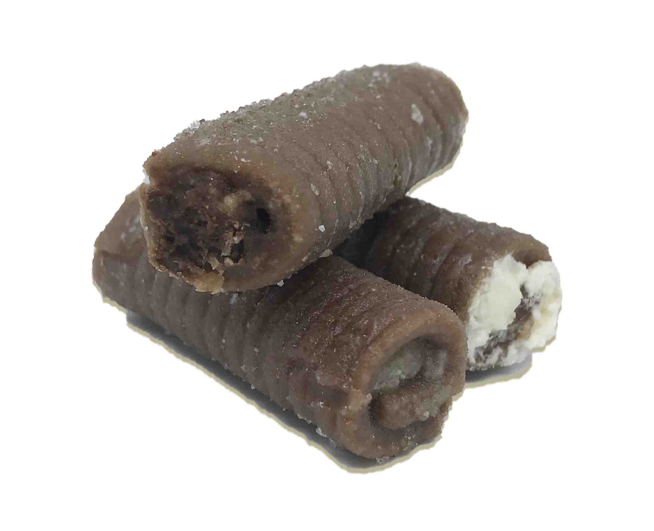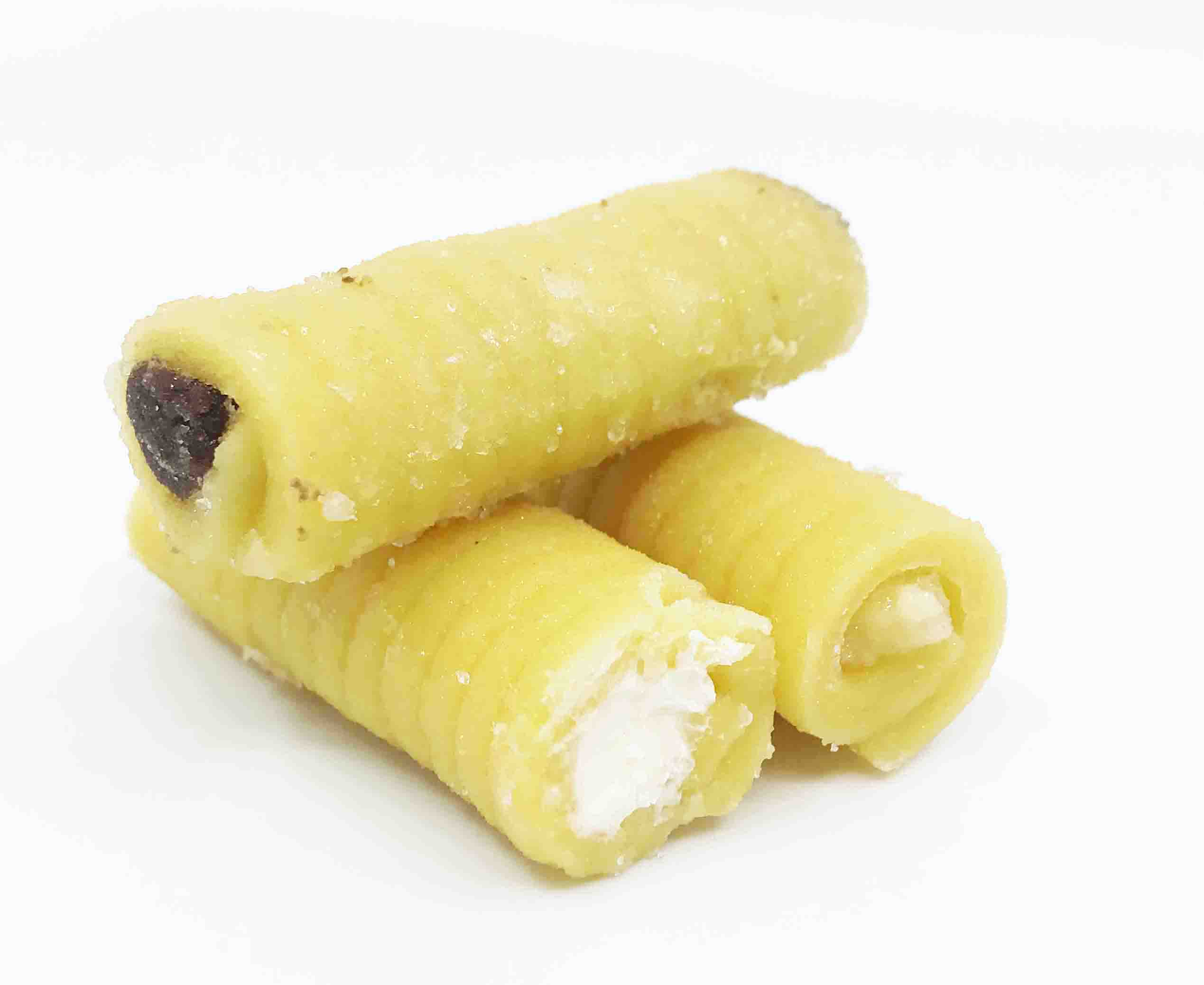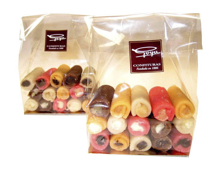 Contiene 500 gr. de Huesos de Santo con escarche de almíbar y rellenos de Yema Confitada, Trufa o Crema de Mantequilla.